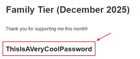 The newest Son Tier, Father Tier and Family Tier codes will be found at the bottom of the most recent posts called “Son Tier (current month and year)”, “Father Tier (current month and year)” or “Family Tier (current month and year)”. (You might have to scroll a bit down to find it.) Once you have found the post, the passcodes will be written in bold letters.